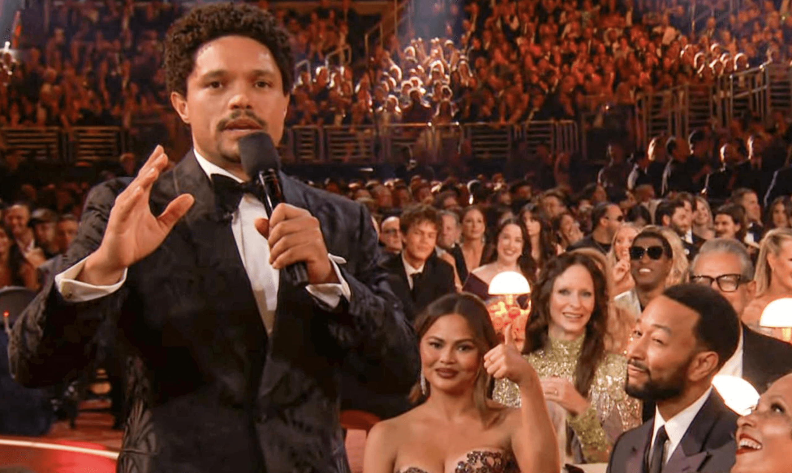 Durante el anuncio del premio a Canción del Año para Billie Eilish, Trevor Noah bromeó: “Ese es un Grammy que todos los artistas quieren, casi tanto como Trump quiere Groenlandia”, y agregó: “Lo cual tiene sentido porque, ya que Epstein ya no está, necesita una nueva isla para pasar el rato con Bill Clinton. ¡Les dije que es mi último año! ¿Qué van a hacer al respecto?”. Estas declaraciones, propias del estilo incisivo de Noah, fueron interpretadas por Trump como difamatorias y motivo para una potencial demanda.