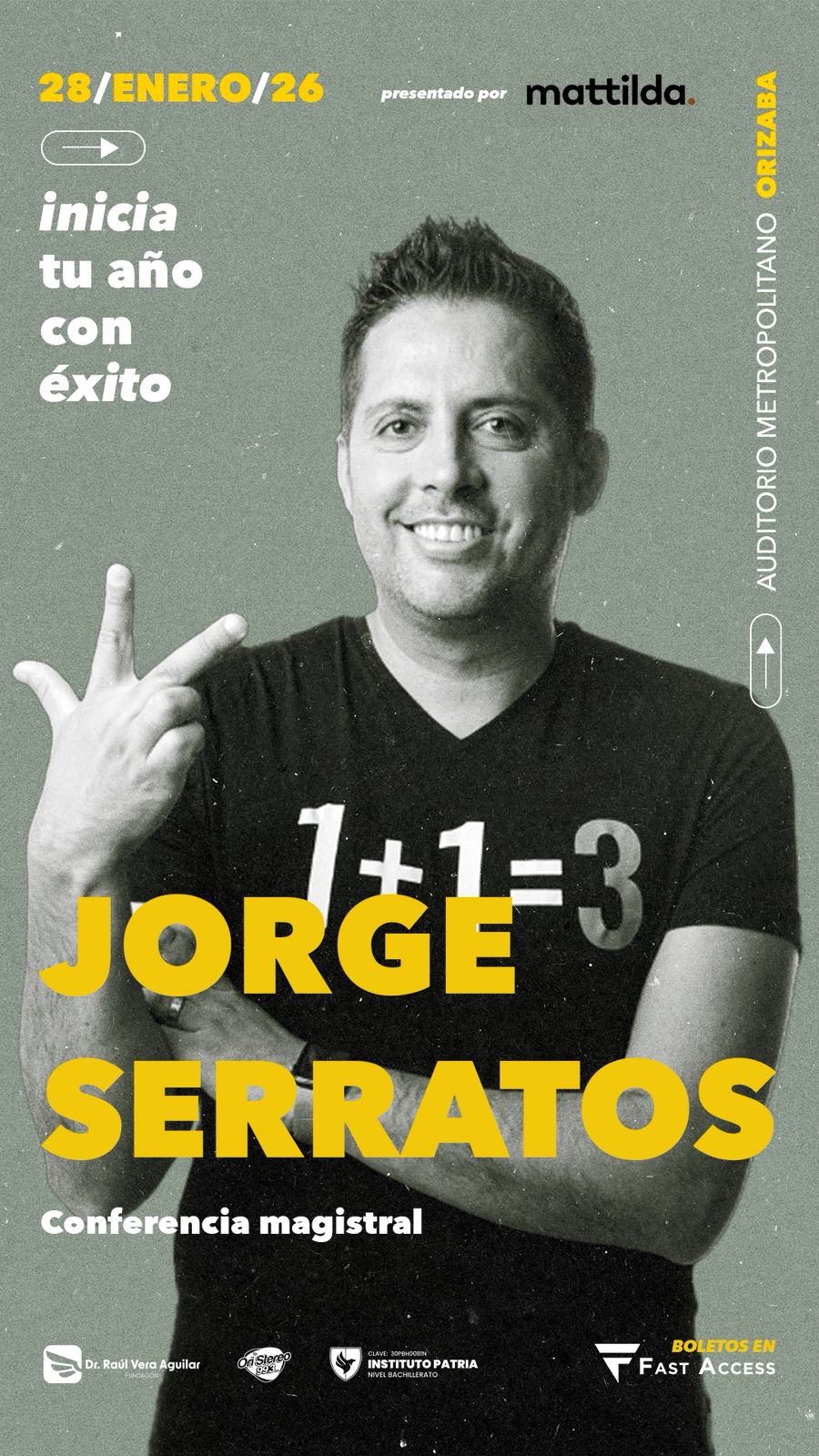 Jorge Serratos es un conferencista y comunicador mexicano reconocido por su estilo directo, su energía contagiosa y su enfoque práctico para el crecimiento personal y profesional. A lo largo de su trayectoria ha impartido conferencias en México y América Latina, enfocándose en temas de liderazgo, mentalidad positiva y construcción de propósito. Su mensaje se resume en una ecuación tan sencilla como poderosa: 1 + 1 = 3, símbolo de que el trabajo en conjunto y la actitud multiplican los resultados.