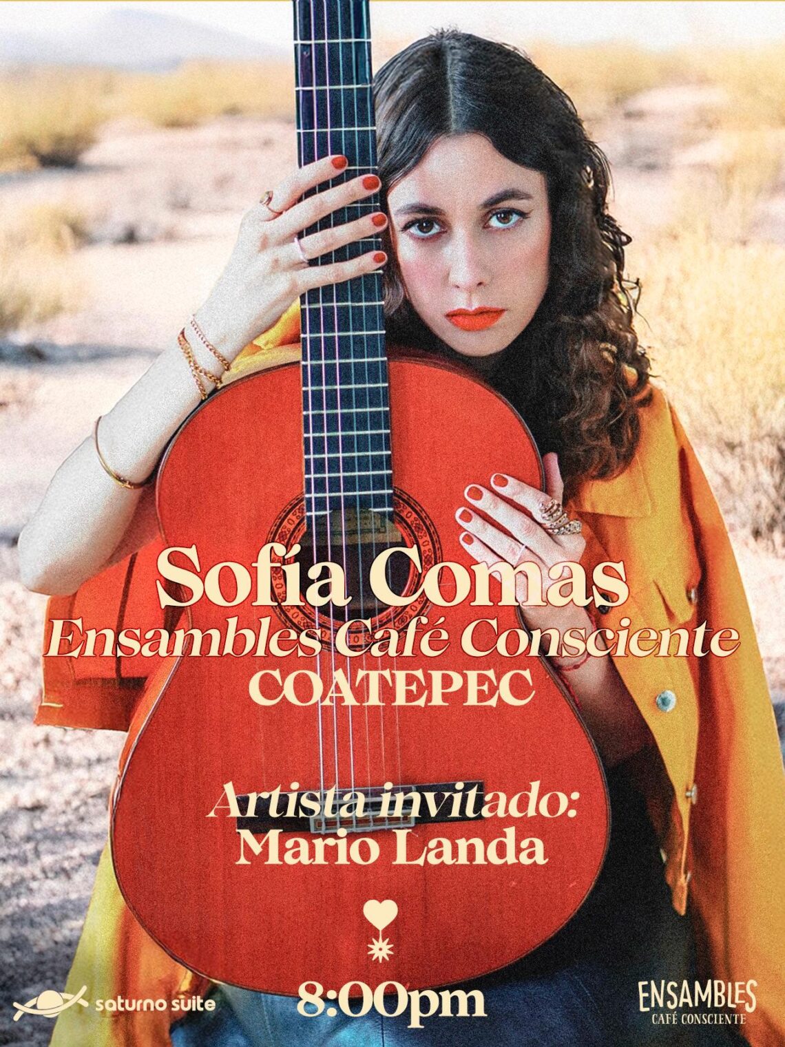 Sofía Comas ofrecerá un concierto acústico y único el 14 de noviembre de 2025 en el emblemático Ensambles Café Consciente de la ciudad de Coatepec, prometiendo una velada mágica llena de folk, historias y emoción.