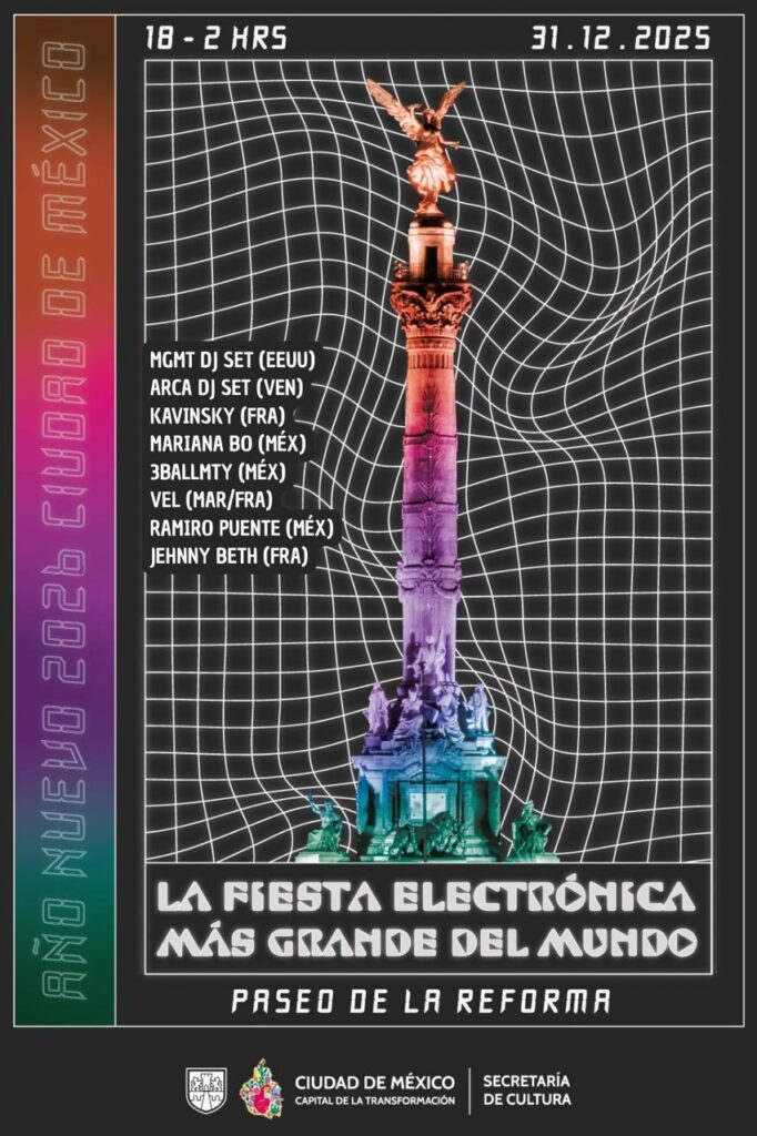 La celebración comenzará a las 18:00 horas del martes 31 de diciembre en el emblemático Paseo de la Reforma, teniendo como escenario principal la glorieta del Ángel de la Independencia. El espectáculo está programado para finalizar a las 02:00 horas del 1 de enero, permitiendo a los asistentes recibir el año nuevo al ritmo de la mejor electrónica.